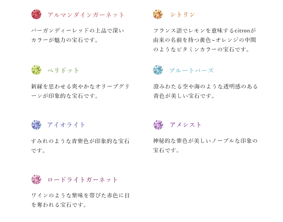 宝石のカラフルさと相まって、可憐な印象に。